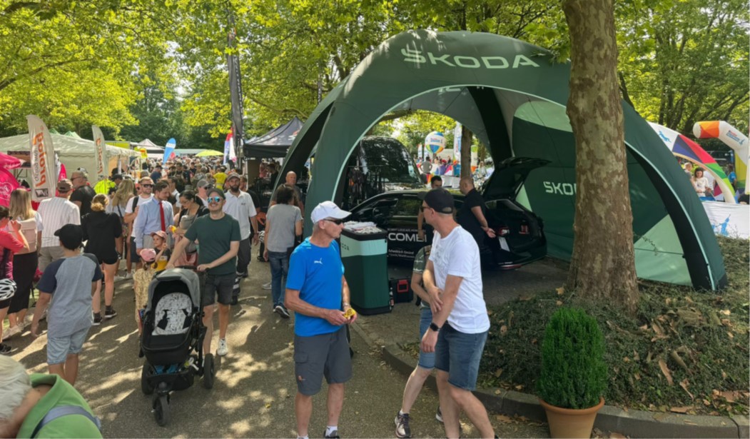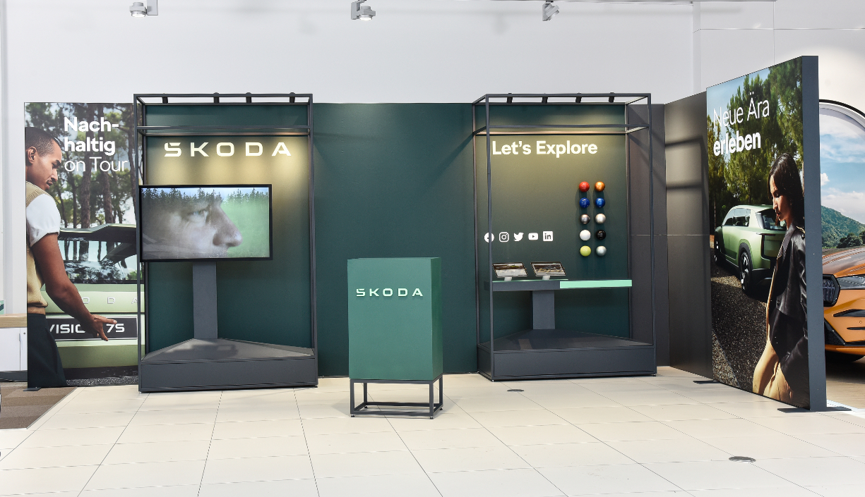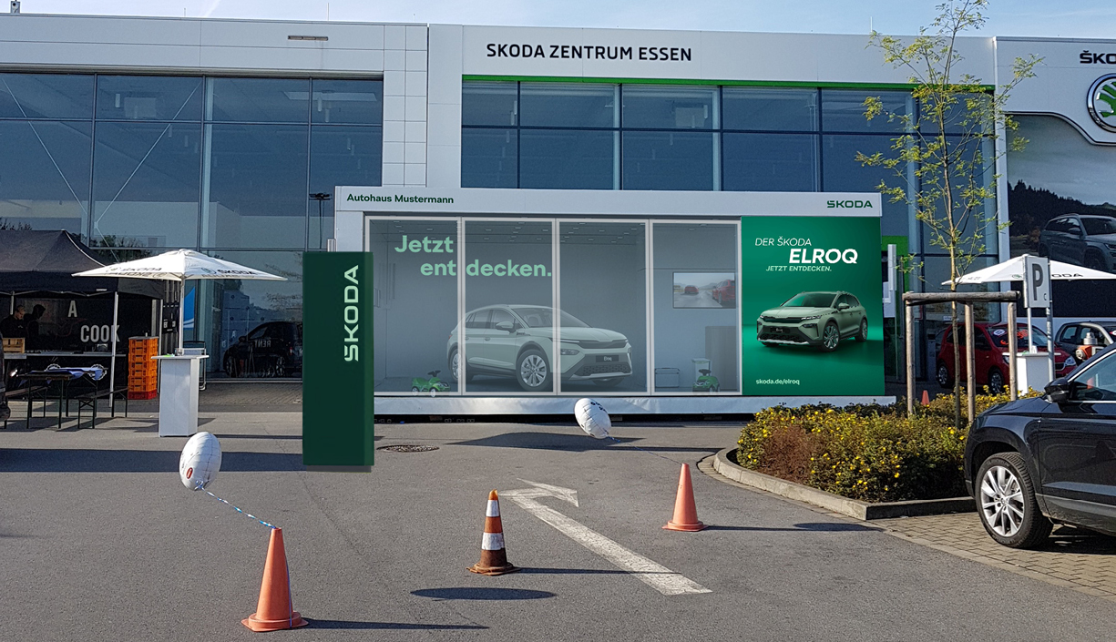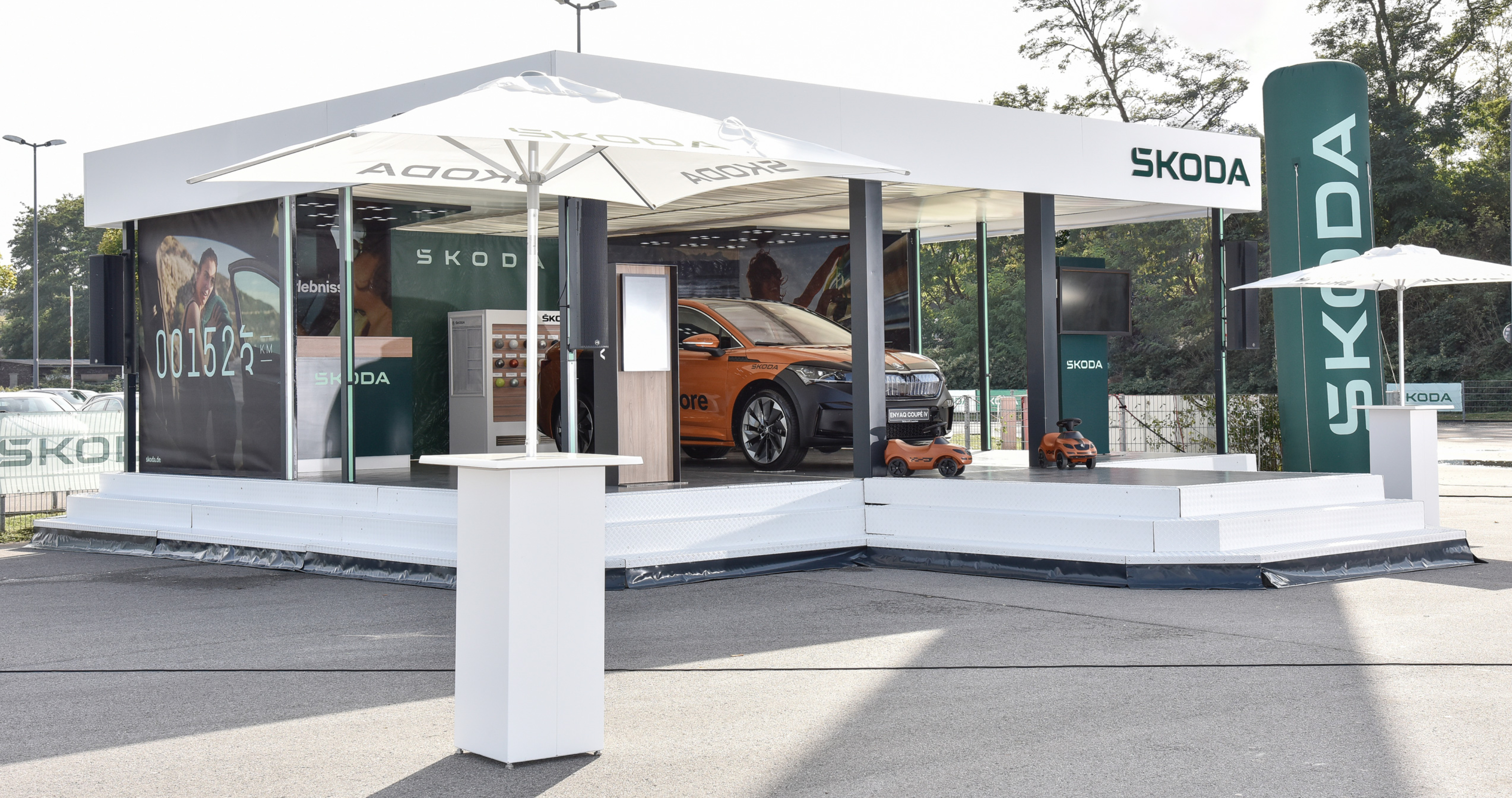 Dank der variablen Aufbautiefe – zwischen 5,2 und 7 Metern – auch mal kurzfristig direkt in der City. So ein Spontanauftritt lädt die Besucher ein, die Marke Škoda von jetzt auf gleich zu erleben. Hier gibt es etwas zu entdecken!